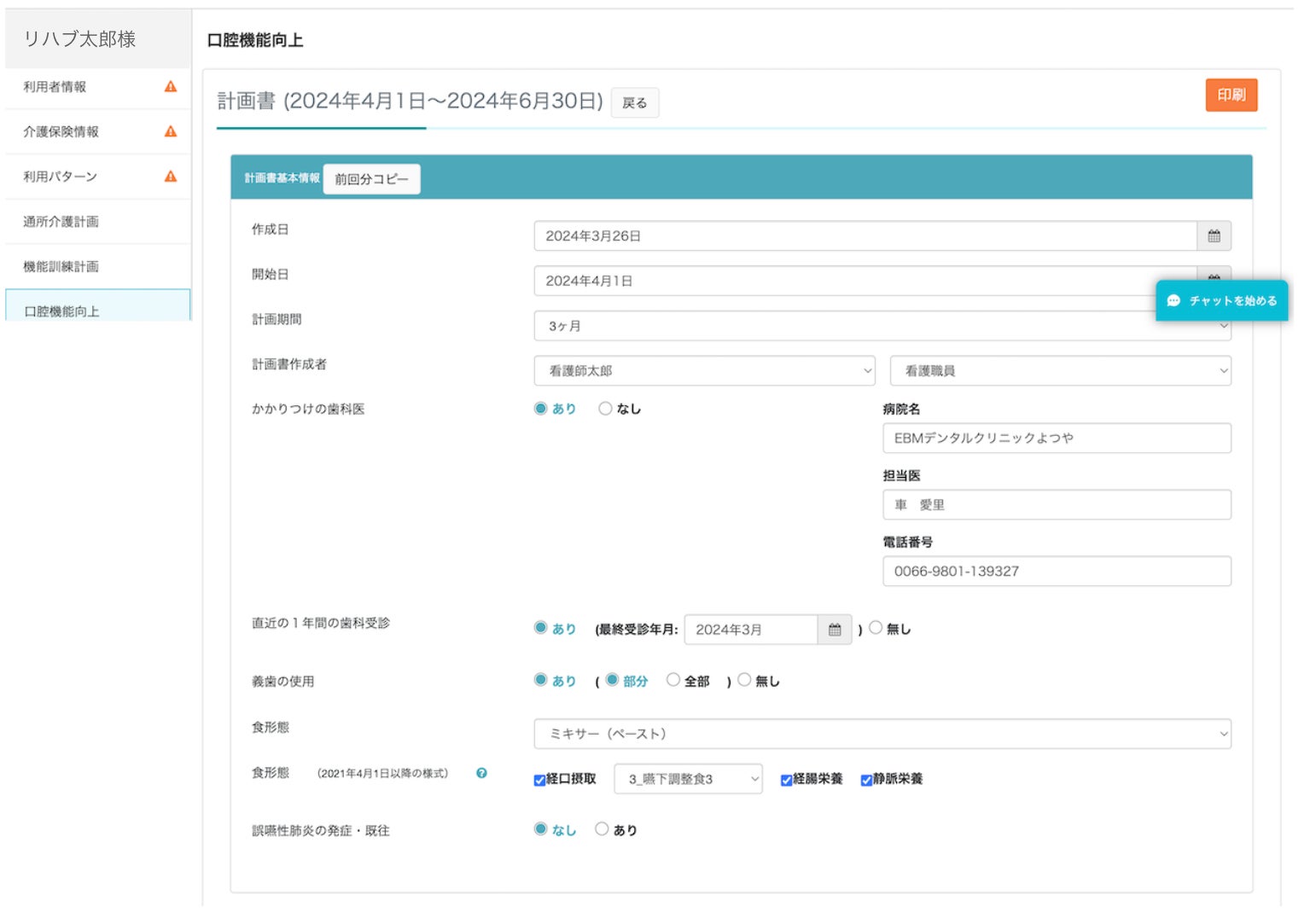 帳票(計画書・アセスメント・実施記録)の様式変更に対応※。「Rehab Cloud リハプラン」では口腔計画書作成〜LIFE提出まで簡単、安心に行うことができます。