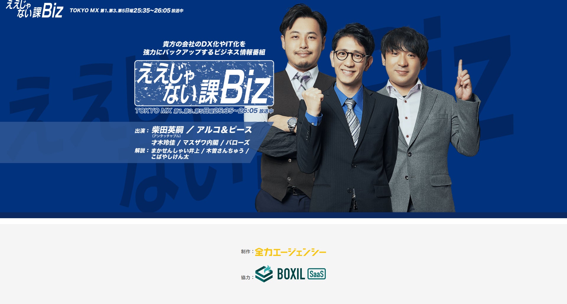 アンタッチャブル柴田・アルコ&ピース出演の東京MX「ええじゃない課Biz」で『マイ名刺 biz』が登場!名刺発注の手間を95%削減するWebサービスとは?