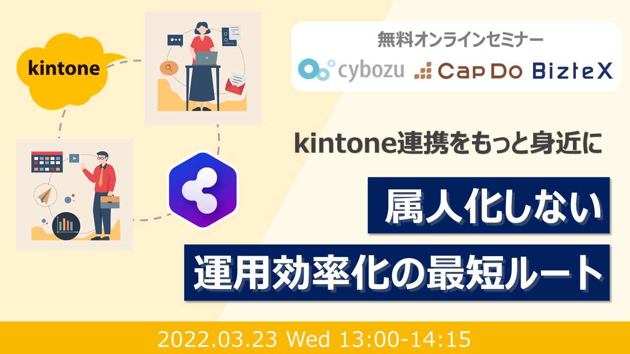 本オンラインセミナーではサイボウズ社提供の業務改善プラットフォーム「kintone」の運用や他システムとの連携等、クラウドサービスを活用した業務改善に関する情報をお話いただきます。
