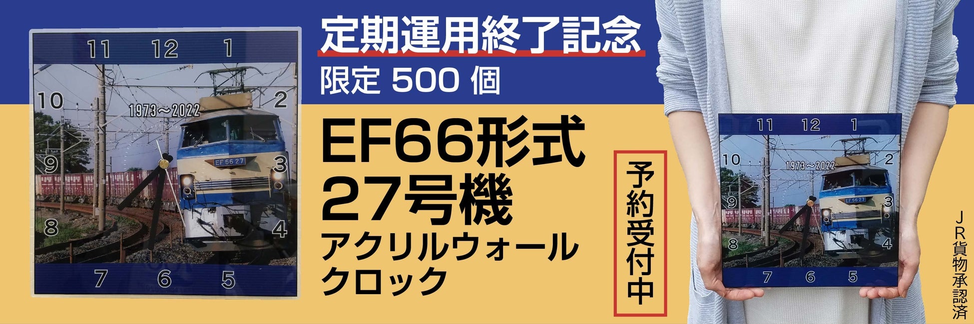 【定期運用終了記念】EF66形式27号機アクリルウォールクロック(限定生産500個)を予約販売開始!【JR貨物承認済】