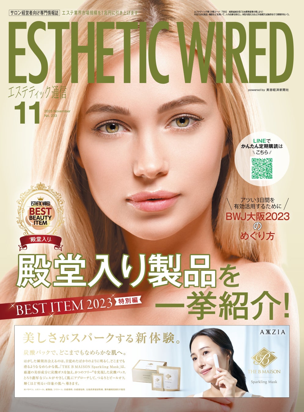 「ベストアイテム2023」は株式会社美容経済新聞社が発行するサロン経営者向け専門情報誌「エステティック通信」のオリジナルアワードです。