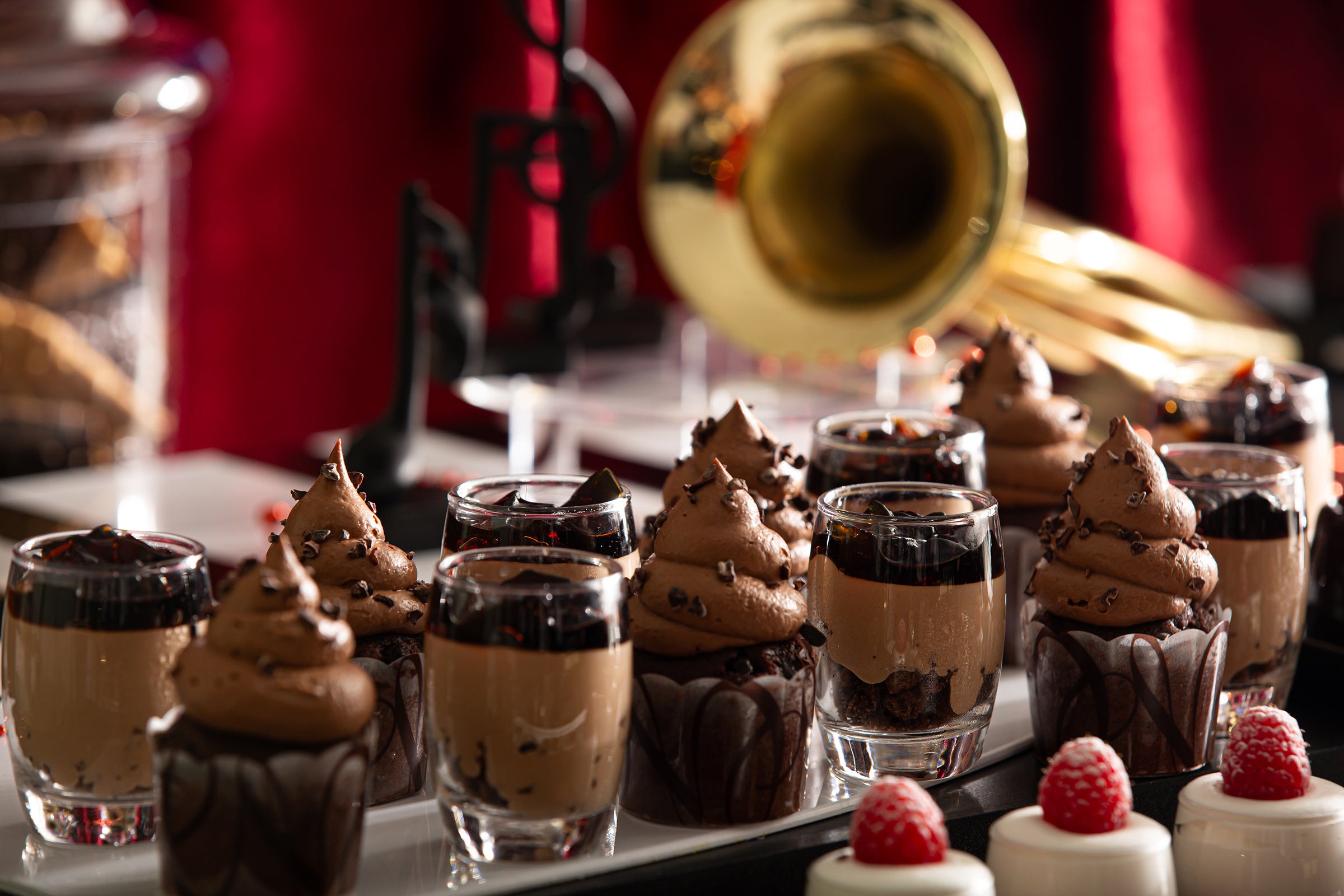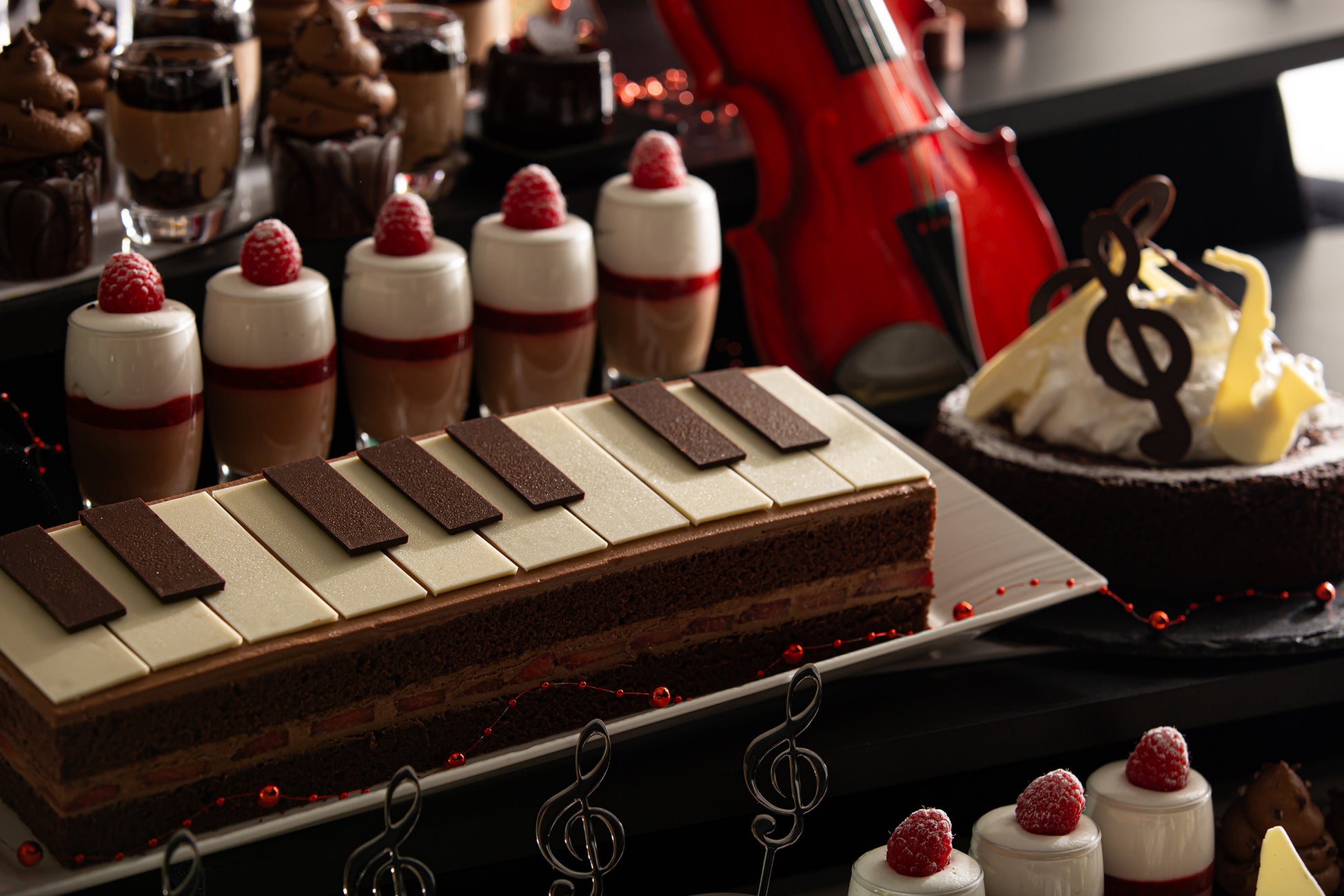 ピアノショコラショートケーキ、オペラ、カフェショコラ、ショコラカラメルサレ、プラリネショコラミルク、ドームショコラブラン、ショコラバナナクレープ、ホワイトチョコレートパンナコッタ、音符クッキー、ショコラクレームブリュレ、ショコラカヌレ、ショコラマカロン、タルトショコラ、ショコラフィナンシェ、チョコレートファウンテン など全30種