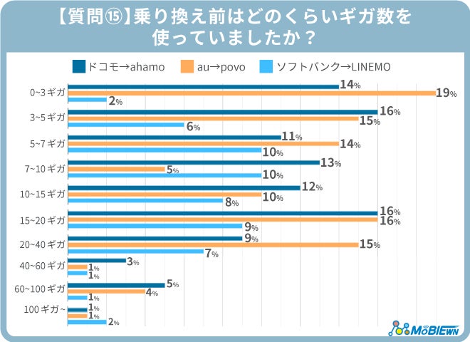 ・ドコモ→ahamo:「15~20ギガ」16.0%