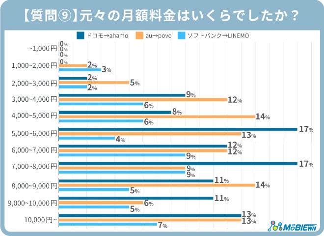 ・ソフトバンク→LINEMO:「6,000~7,000円」「7,000~8,000円」同率16.1%