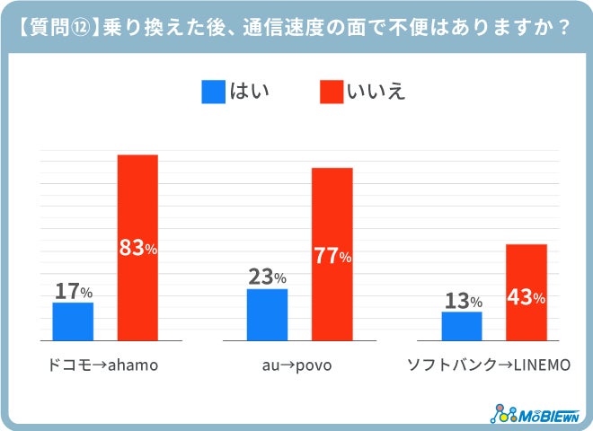 乗り換えによる通信速度の不便は大半が「ない」と回答