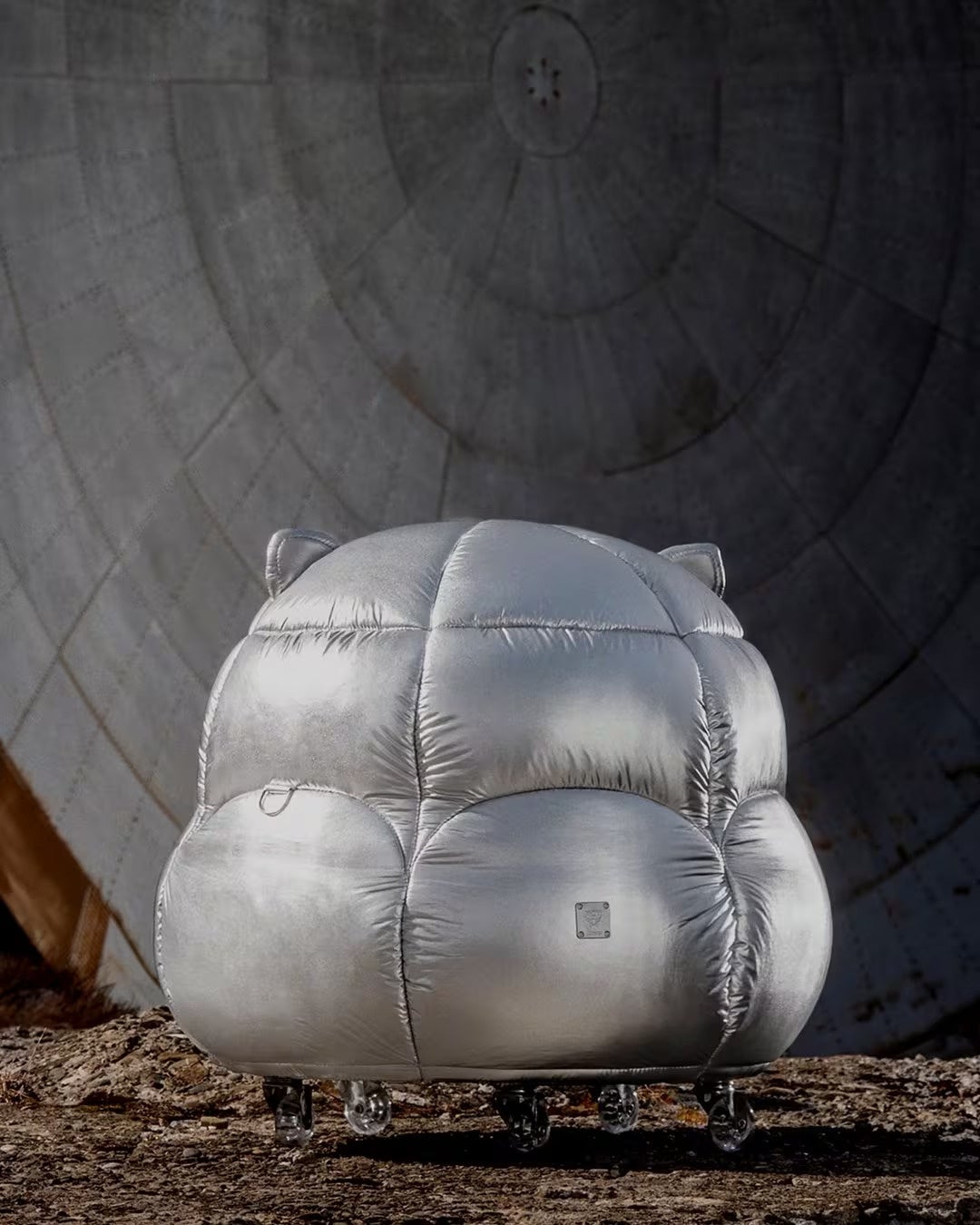 アトリエ・ビアゲッティとのコラボレーションでは、MCMのヴィセトスモノグラムをアップサイクルし、デザインを一新した限定アイテムを制作。 幾何学的な形状のキャンドル、フリーハンドのロボット風プフ、未来的なフォルムのヘルメットなど、火星での生活をイメージしてアレンジされた日常的なオブジェクトがコレクションとして展開されます。