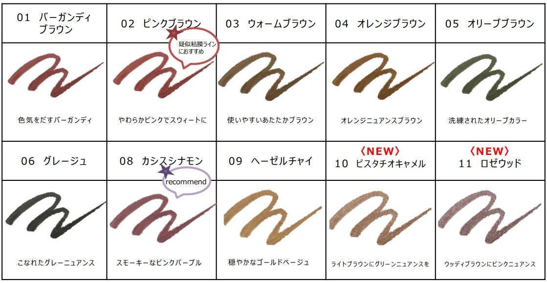 ●極細芯なのにすっと溶け込むようななめらかなテクスチャーで、目もとのフォルムをさりげなく際立たせる。 ー肌なじみのよいゴールドパール配合