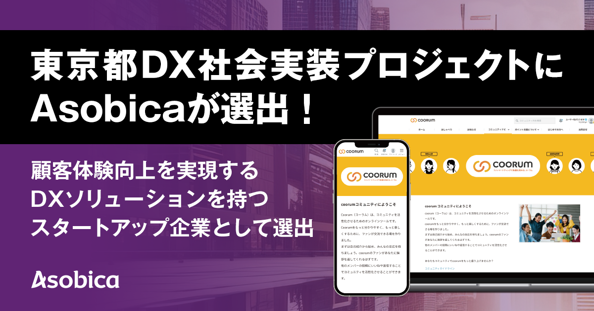 Asobicaが「東京都DX社会実装プロジェクト」において、顧客体験向上を実現するDXソリューションを持つスタートアップ企業として選出