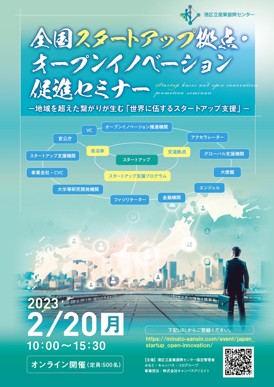 港区立産業振興センター(所在地:東京都港区)では、2月20日に「全国スタートアップ拠点・オープンイノベーション促進セミナー略 -地域を超えた繋がりが生む「世界に伍するスタートアップ支援」-」を開催いたします。