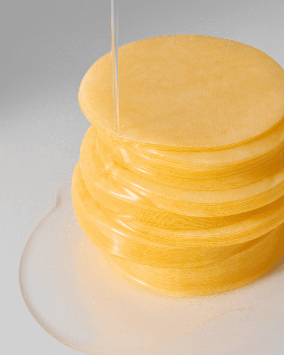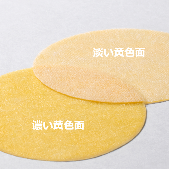 たっぷりと美容液を蓄えることができる濃い黄色面。ブランド初*4のビタミンC*5原糸を用いたシートで、気になるパーツへ美容液をしっかり浸透*6させます。