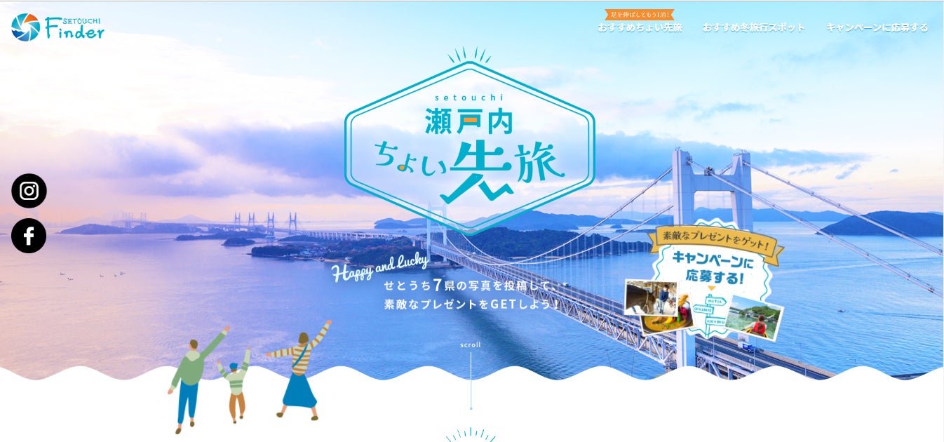 瀬戸内の魅力が伝わる自然、温泉、宿、グルメ…などの旅行をしたときの写真をFacebookまたはInstagramに指定したハッシュタグ(#瀬戸内ちょい先旅)と撮影場所がわかるタグや表記をつけて投稿すると抽選で瀬戸内の名産品が当たります。