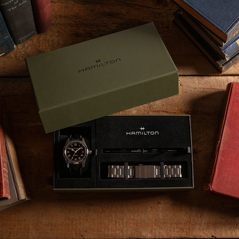 発売以来、世界中の映画ファンと時計愛好家から高い評価を受け、ハミルトンの中でも屈指の人気モデルへと成長した「カーキ フィールド マーフ 42mm」。今回の一式は、その魅力をさらに引き出す特別なバンドルセットです。映画の感動を日常に取り入れたい方、そして一本の時計で多彩なスタイルを楽しみたい方にとって、まさに理想的な選択肢です。