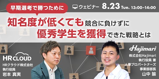 「自立」を目指す全ての人々支援する 全国約60,000人が登録するマッチングサービスを展開する株式会社Hajimari(所在地:東京都渋谷区、代表取締役:木村 直人、以下Hajimari)より立ち上げた、人事の副業・フリーランス支援サービス「人事プロパートナーズ」が、8月23日(火)に株式会社HRCloudとの無料共催セミナーを開催致します。