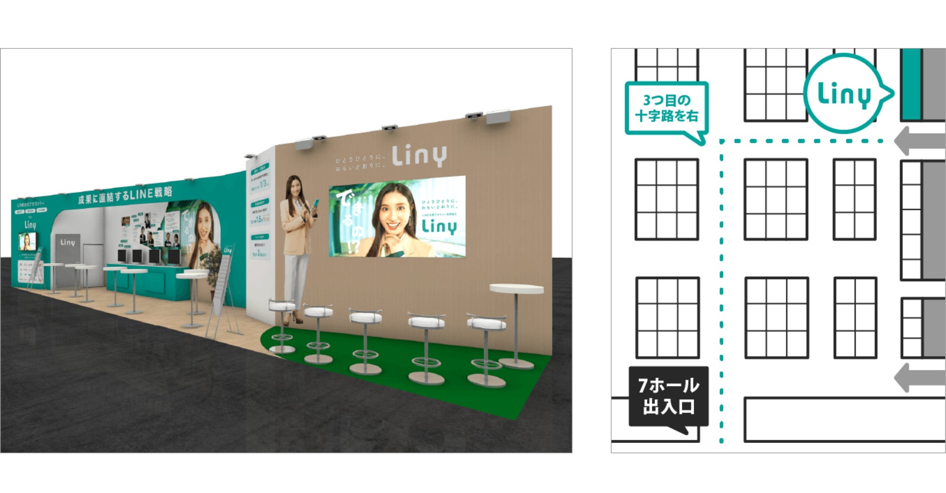 出展ブースでは、集客・販促・業務効率化にお悩みの担当者の方へ「成果に直結するLINE戦略」をテーマに、LINE公式アカウントの機能を拡張しコンテンツの配信・運用・顧客管理をサポートするツール『Liny』を活用した成功事例についてご紹介いたします。