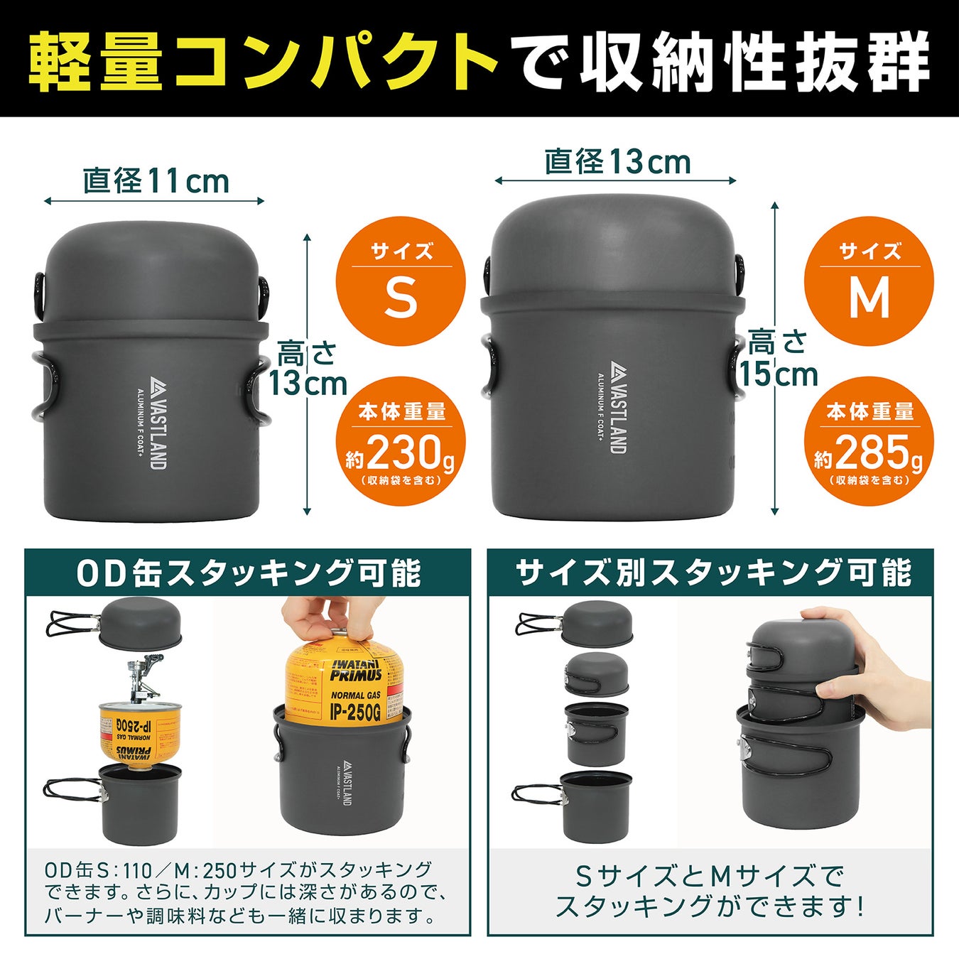 「キャンプアクティビティを通じて、広がる幸せ」をブランドミッションに、キャンプギアブランド「VASTLAND(ヴァストランド)」を展開するVASTLAND株式会社(本社:兵庫県姫路市/代表:田中悠貴)は、荷物は最小限に抑えたいが、キャンプ飯は楽しみたい人に向けて「クッカー2点セット」S・Mサイズを、2024年9月14日(土)にAmazonと楽天市場で発売します。