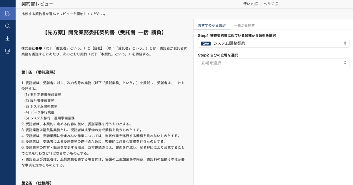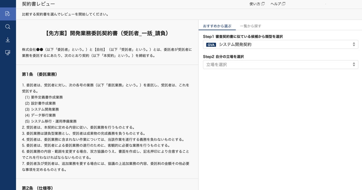 AI契約審査クラウド「GVA assist」がプレイブックの選択機能をアップデート。契約類型が自動判定され、契約時の立場を選択するだけで適切なプレイブックを一覧表示し、契約審査がよりスムーズに。