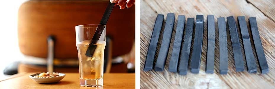 日本の水道水の多くは、塩素消毒によるカルキ臭が残ってしまうことが多いですが、竹炭マドラーの使用により、それらを簡単に解消できます。竹炭には塩素をはじめとする不純物を吸着する特徴があり、水をより美味しく、口当たりの良いものにします。さらに、竹炭に含まれるミネラルが水に溶け出し、天然のミネラルウォーターが手軽に作れるのです。