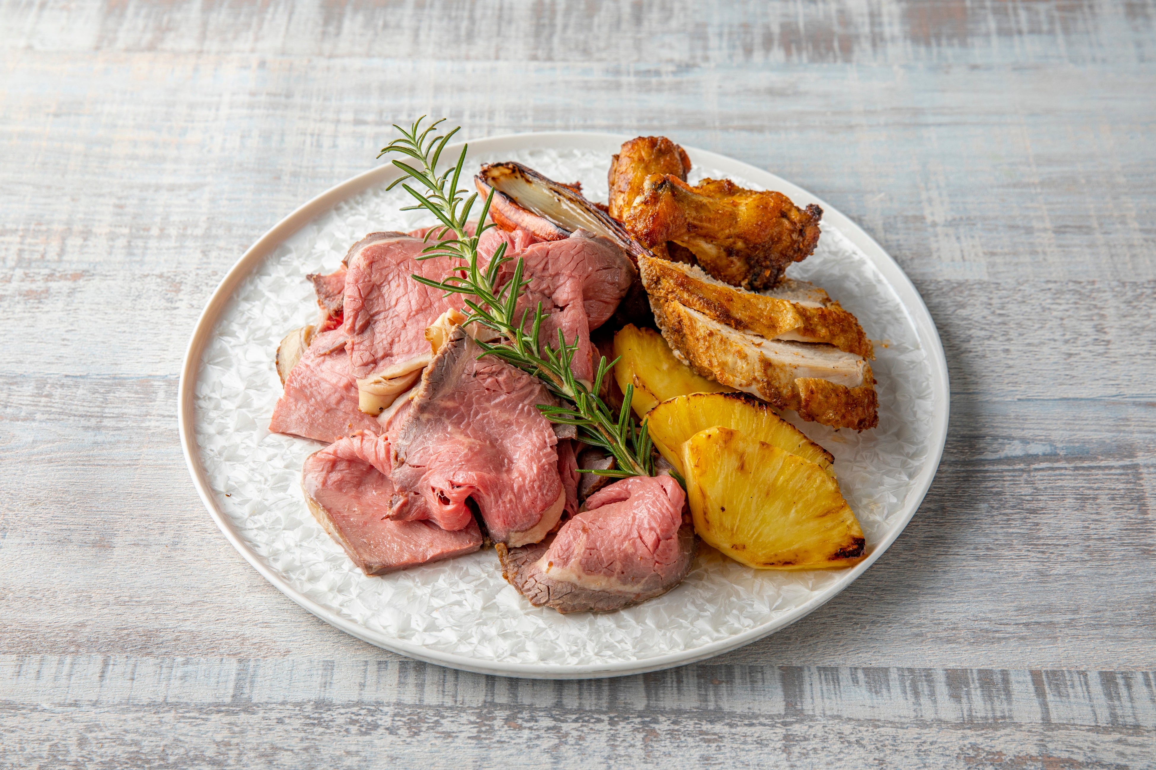 「シュラスコビーフ&ローストパイナップル」、「バーベキューポークベリー」、