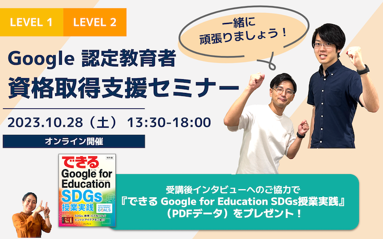 セミナーご受講後、インタビューにご協力いただいた参加者様へ 『できる Google for Education SDGs授業実践』(PDFデータ)をプレゼントいたします。