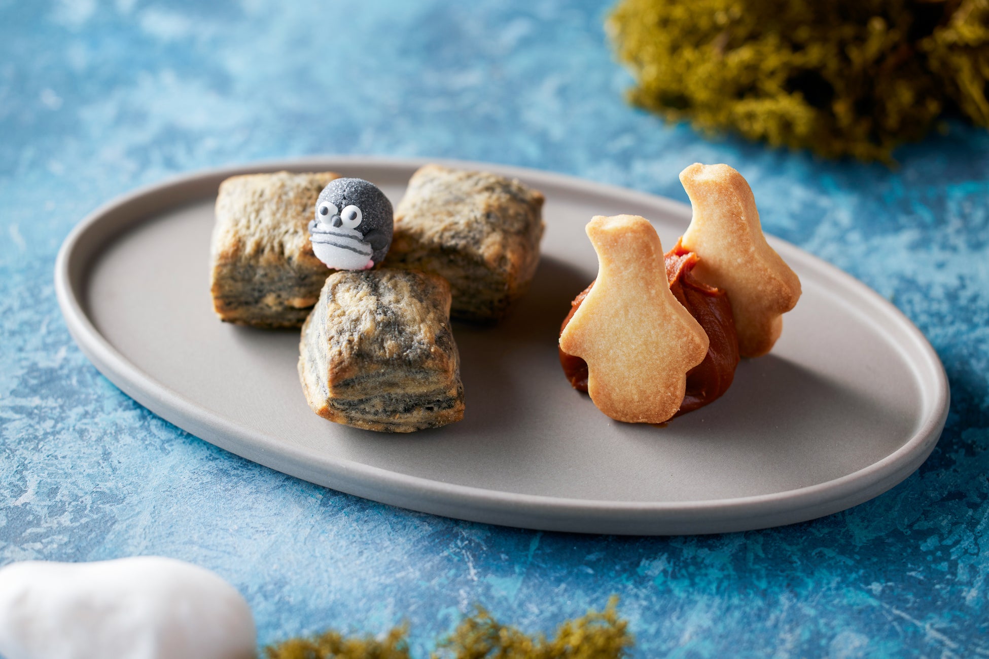 岩場にたたずむペンギンをイメージした、竹炭入りスコーンです。可愛らしいペンギンシュガーと、すみだ水族館で暮らすマゼランペンギンの生息地「アルゼンチン」で親しまれているキャラメルのような“ドルセ・デ・レチェ”を添えてお楽しみいただけます。