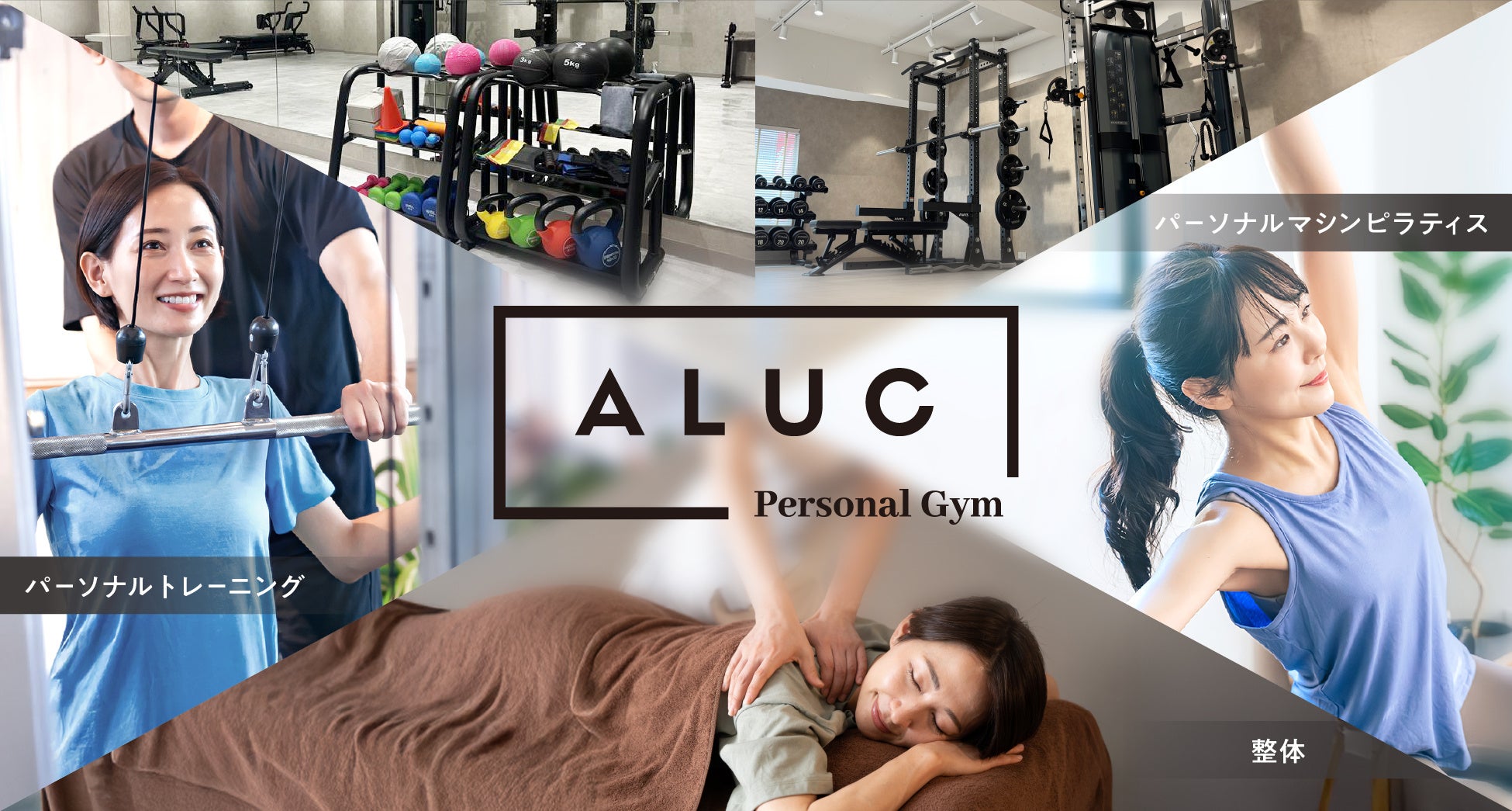 『パーソナルジムALUC』は、マシンピラティス・ファンクショナルトレーニング・整体の3つの組み合わせにより、カラダをケアしながらボディメイクができる新感覚パーソナルジムです。マシンピラティスでは美しさの土台となる姿勢を整え、ファンクショナルトレーニングでは引き締まったボディラインをつくるための筋肉を鍛えます。また、整体ではトレーニングによる筋肉疲労を回復させることができるため、安全且つ効率的にボディメイクができます。その日のコンディションに合わせてメニューを選択できる上、1つあたり30分という短時間でパーソナル体験が可能なので、タイムパフォーマンスが高い点が特徴です。