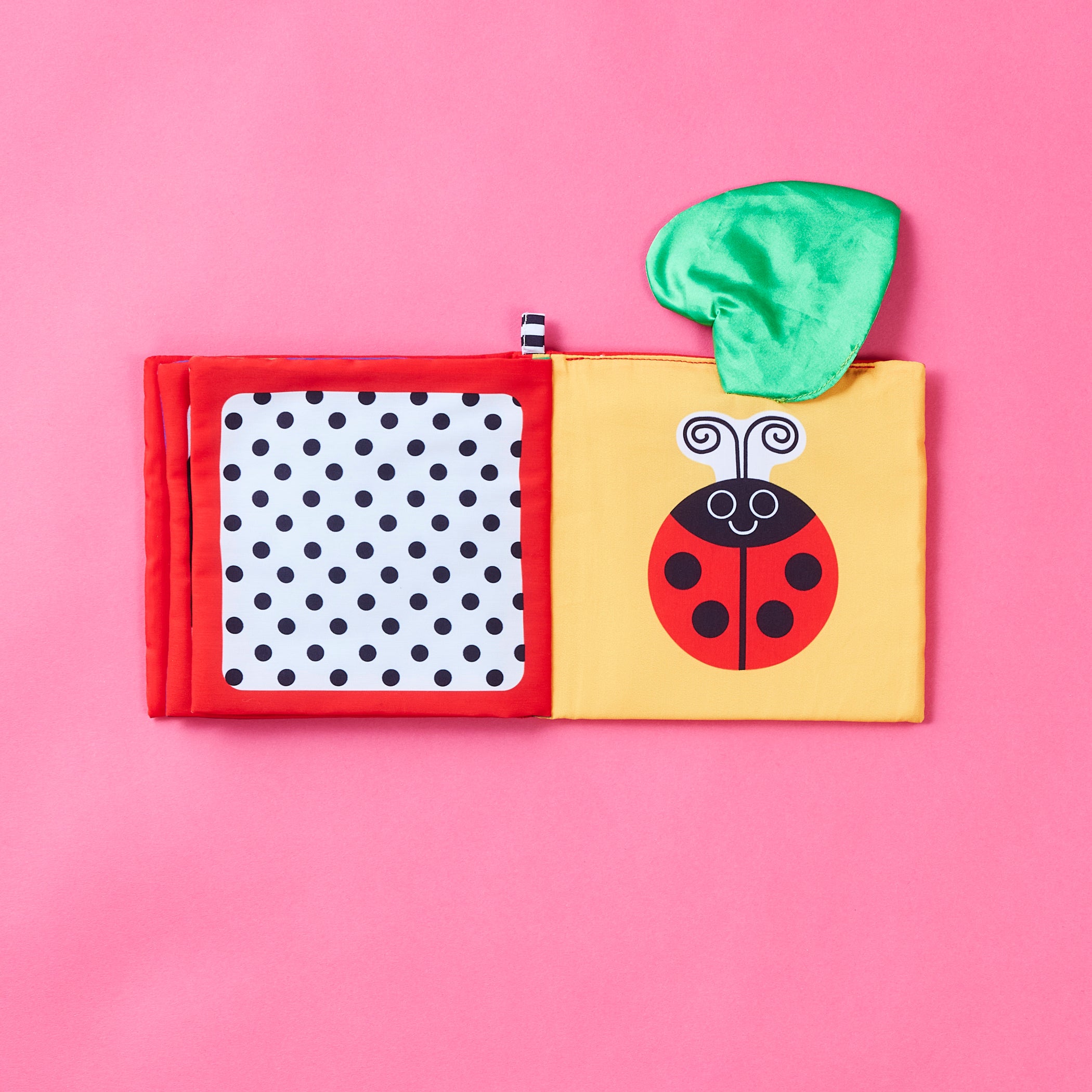 ロングセラーの歯がため「カミカミみつばち」が表紙にデザインされた、しかけが盛りだくさんのぬのえほん。