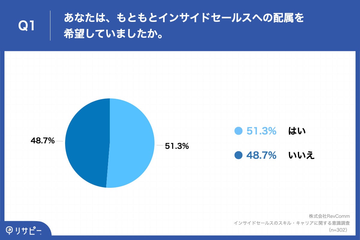 - 現役インサイドセールスの48.7%が、インサイドセールスへの配属を希望しておらず