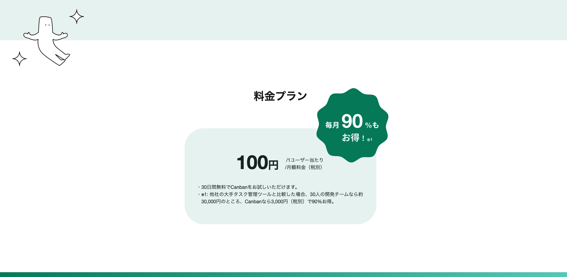 ・1ユーザー100円/月なので、他社の大手サービスと比較して月々約1,000円お得