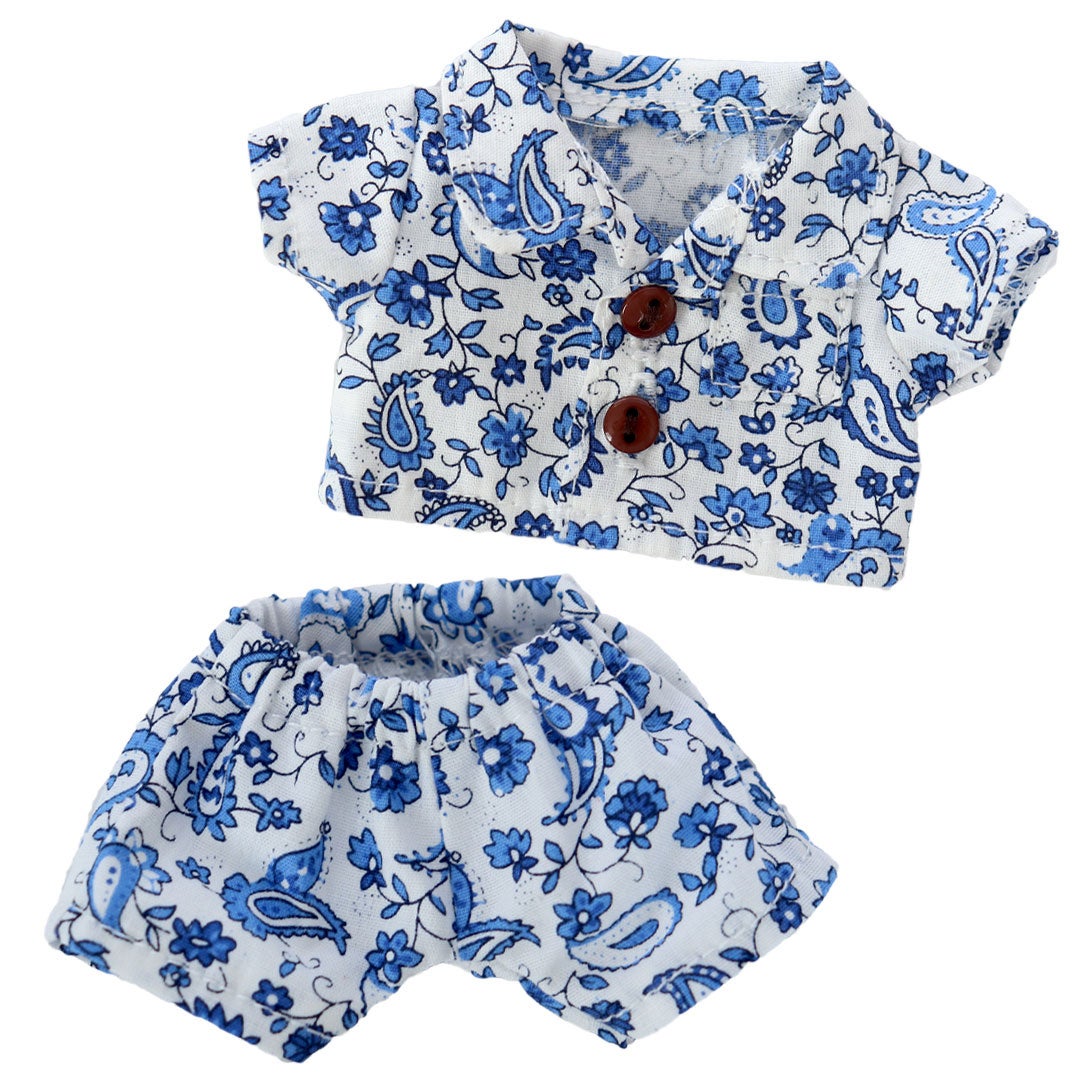 TBアロハシャツセットBL:大人のリゾート感を演出するブルーのペイズリー柄。