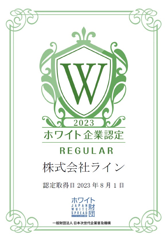 株式会社ラインは2023年8月1日に「ホワイト企業認定 レギュラーランク」を取得されました!
