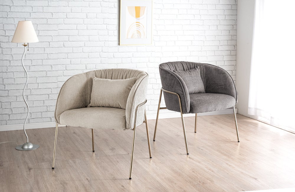 韓国風インテリアのコーディネートにピッタリなチェアが登場!くすみカラーとゴールドフレームがエレガントな空間を演出