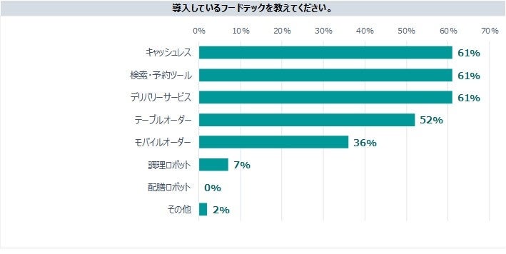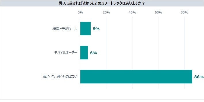 一方、導入しなければよかったと思うフードテックはほぼありませんでしたが、「検索・予約ツール」「モバイルオーダー」はあまり使いこなせていないという回答がありました。