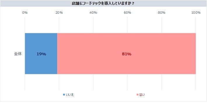 今回の調査でフードテックを導入している飲食店は81%あり、「キャッシュレス」「検索・予約ツールシステム」「デリバリーサービス」を導入しているところが多くありました。特に「キャッシュレス」を導入して良かったと実感しており、人件費削減、時間の捻出という部分で助かっているという回答が得られました。