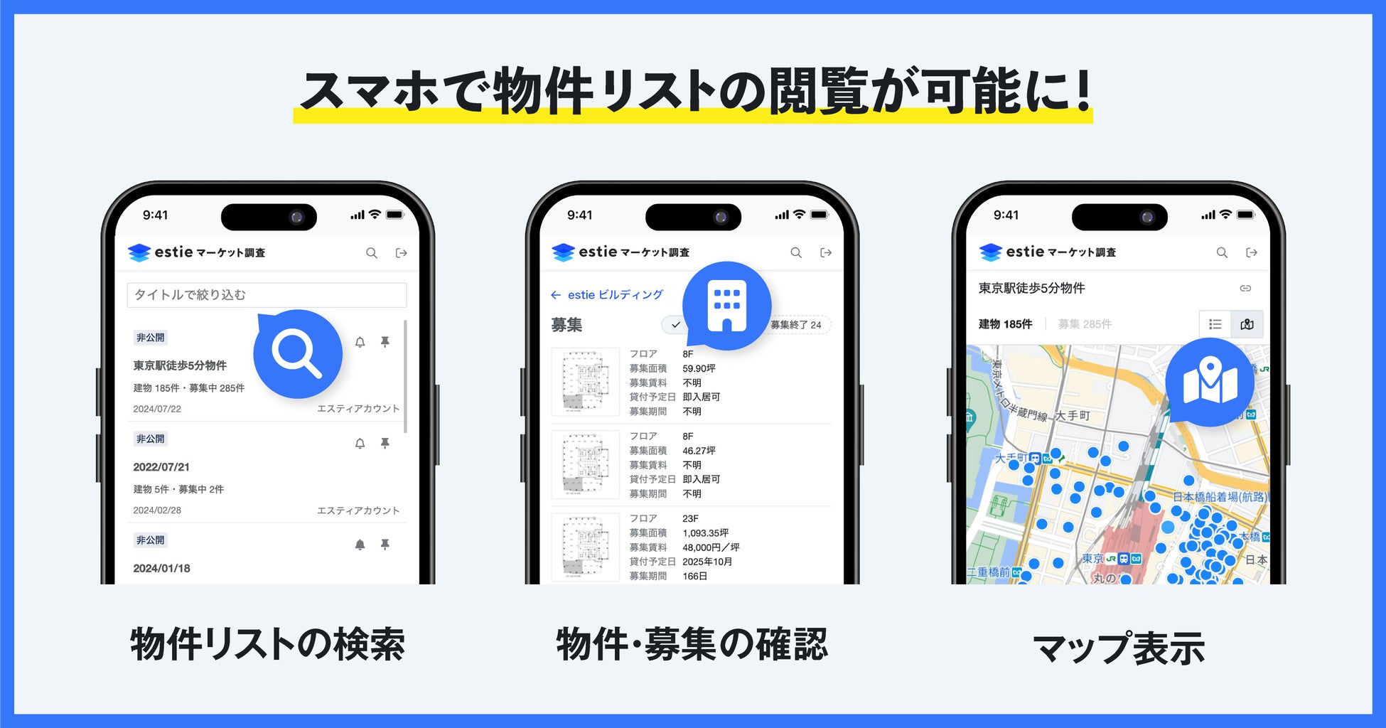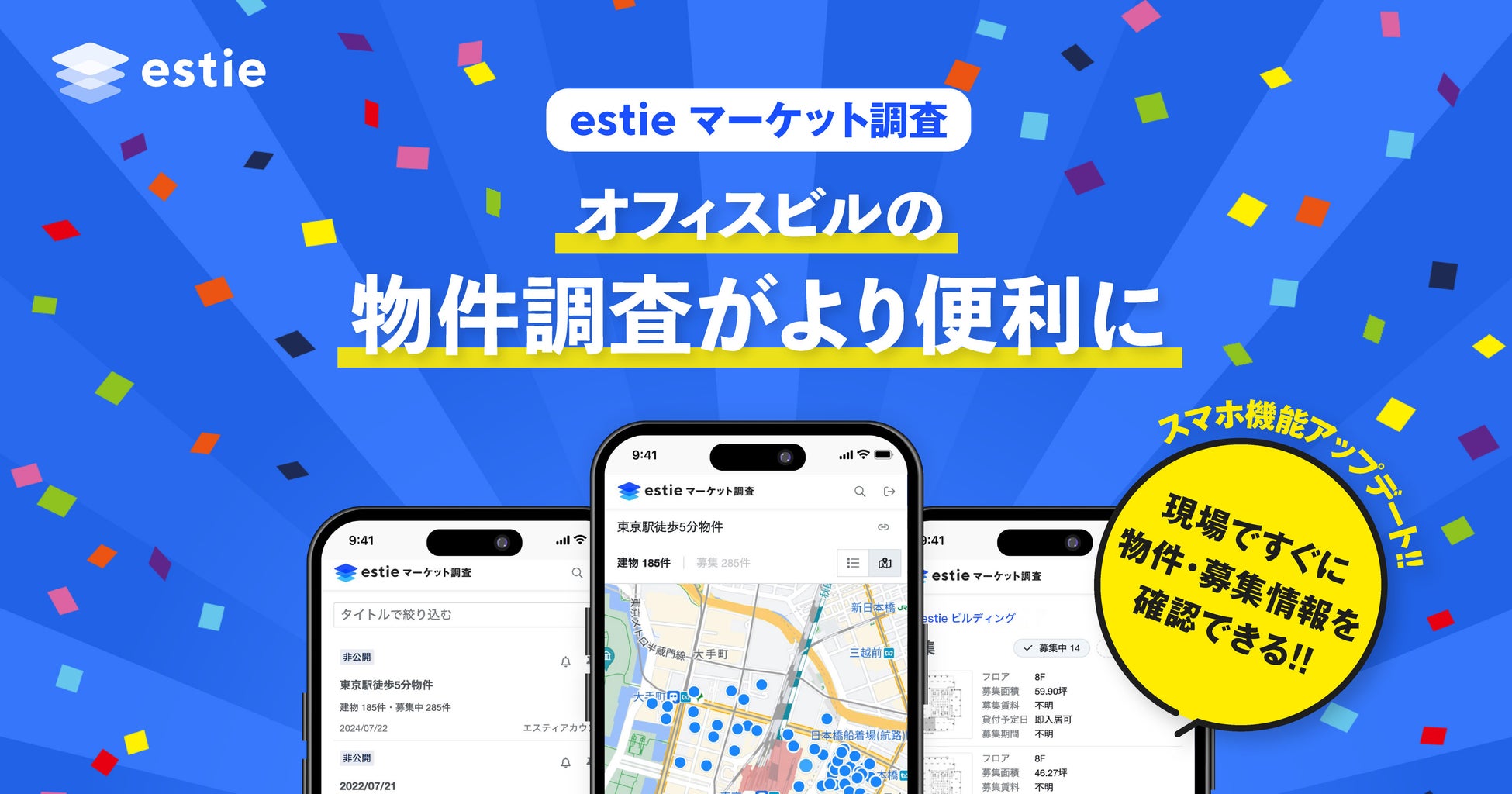 estie、商業用不動産データ分析基盤「estie マーケット調査」にてスマートフォン機能を拡充