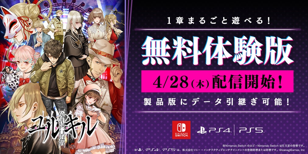 株式会社イザナギゲームズ(東京都江東区、プロデューサー兼CEO:梅田慎介)は、『賭ケグルイ』の河本ほむら・武野光が原作とシナリオを、 シューティングパートの開発をグレフが担当する、冤罪脱出ADV&弾幕STG「冤罪執行遊戯ユルキル」の無料体験版を、Nintendo Switch™、PS4®、PS5®にて2022年4⽉28⽇に配信開始することを発表いたしました。