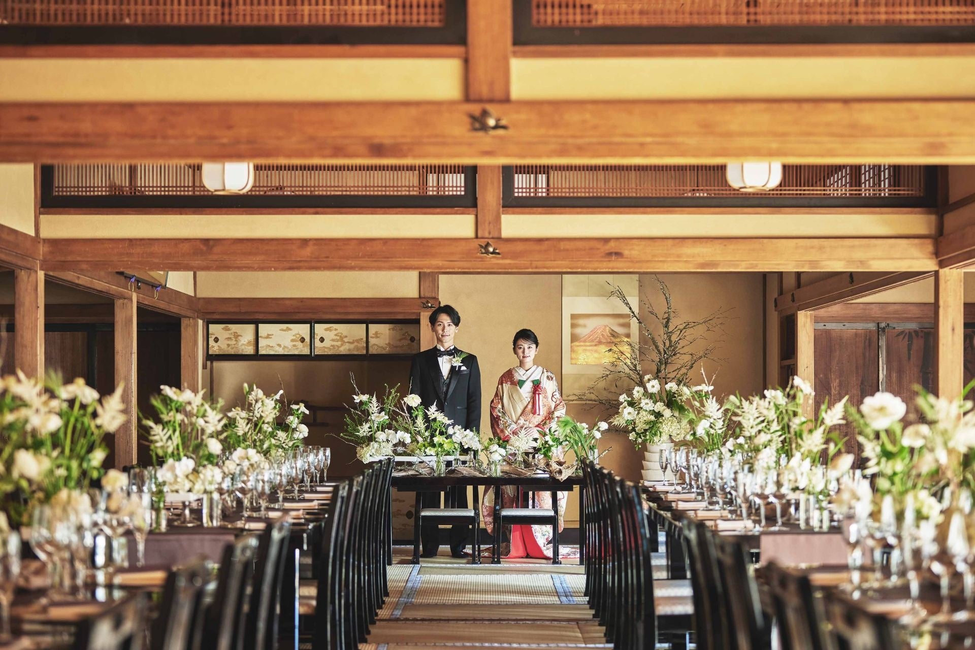 明治神宮の境内にある「桃林荘」は、東京都選定歴史的建造物にも選ばれた、約150年以上もの歴史を誇る建物。日本家屋を貸切可能な披露宴会場として大変人気の施設です。