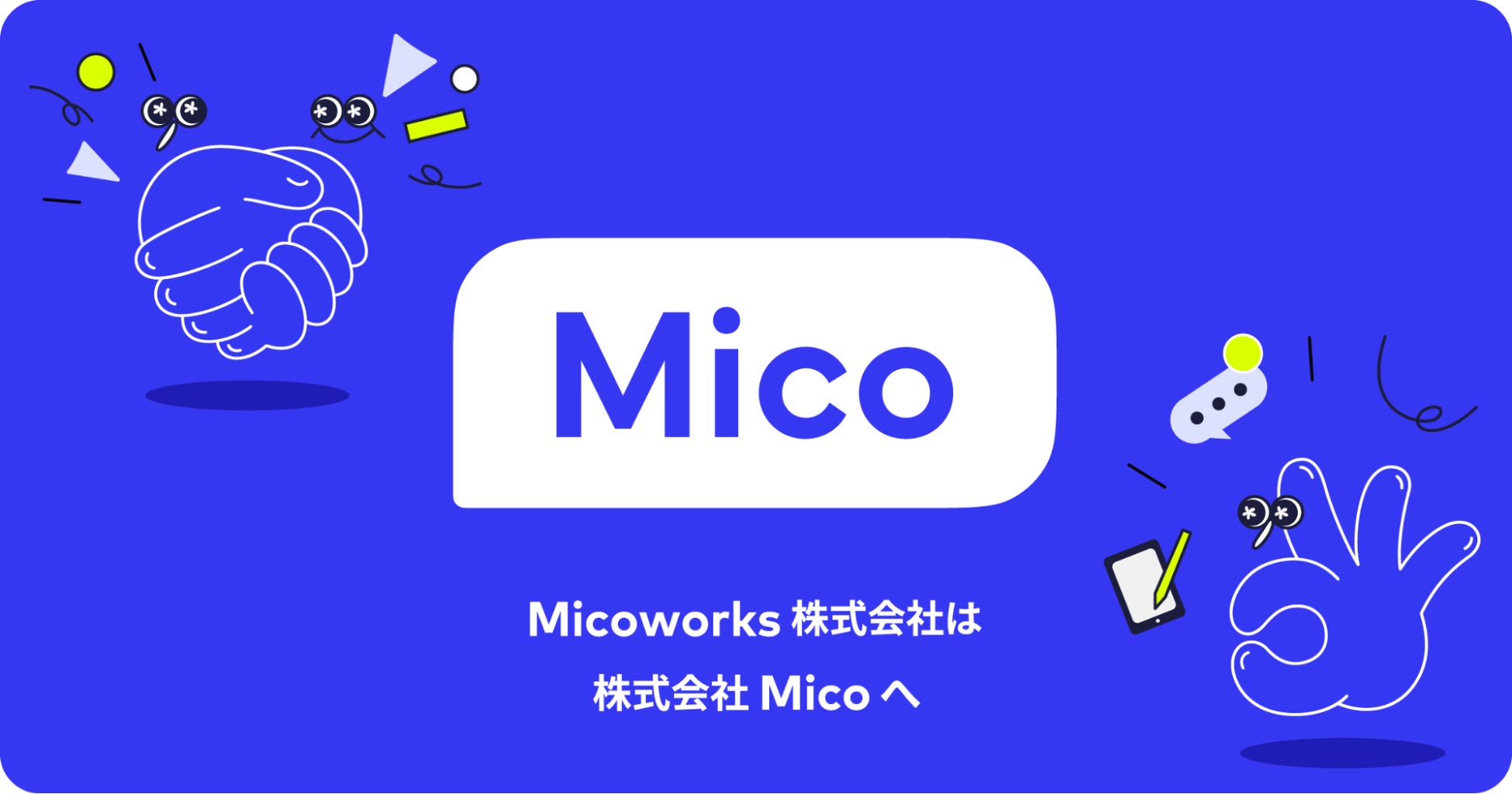 これまでもMicoworksは、多くのお客様に「Mico」の愛称でご愛顧いただいてまいりました。今まで関わっていただいたみなさまに感謝をしつつ、今後のプロダクト拡充と事業拡大を見据え、「Micoブランド」を確立するために社名を変更いたします。