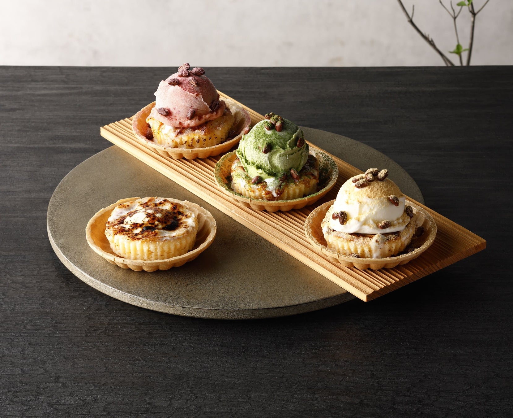 店内では『御用邸チーズケーキ』を五感で感じていただけるように、店内オーブンで焼き上げる小さいサイズの『焼き立て御用邸チーズケーキ』をはじめ、食べ歩きができる店舗限定のテイクアウトメニュー『御用邸チーズケーキブリュレ』を販売いたします。しっとりとした食感と濃厚な味わいがお楽しみいただける『御用邸ミニチーズケーキ』にクリームなどをのせて、こんがり焼き色を付けました。マスカルポーネ、抹茶、ストロベリーといったアイスをトッピングした、暑い夏でもひんやりとお楽しみいただけるフレーバーもご用意しています。また、『御用邸チーズケーキ』と同じ想いをもった手仕事や素材へのこだわりによって生まれたお菓子や雑貨なども展開いたします。無添加、手焼きで丁寧に焼かれた「おかき」や静岡のオーガニック茶葉を使った「日本茶」、伝統文化に基づいた「てぬぐい」なども取り揃えております。