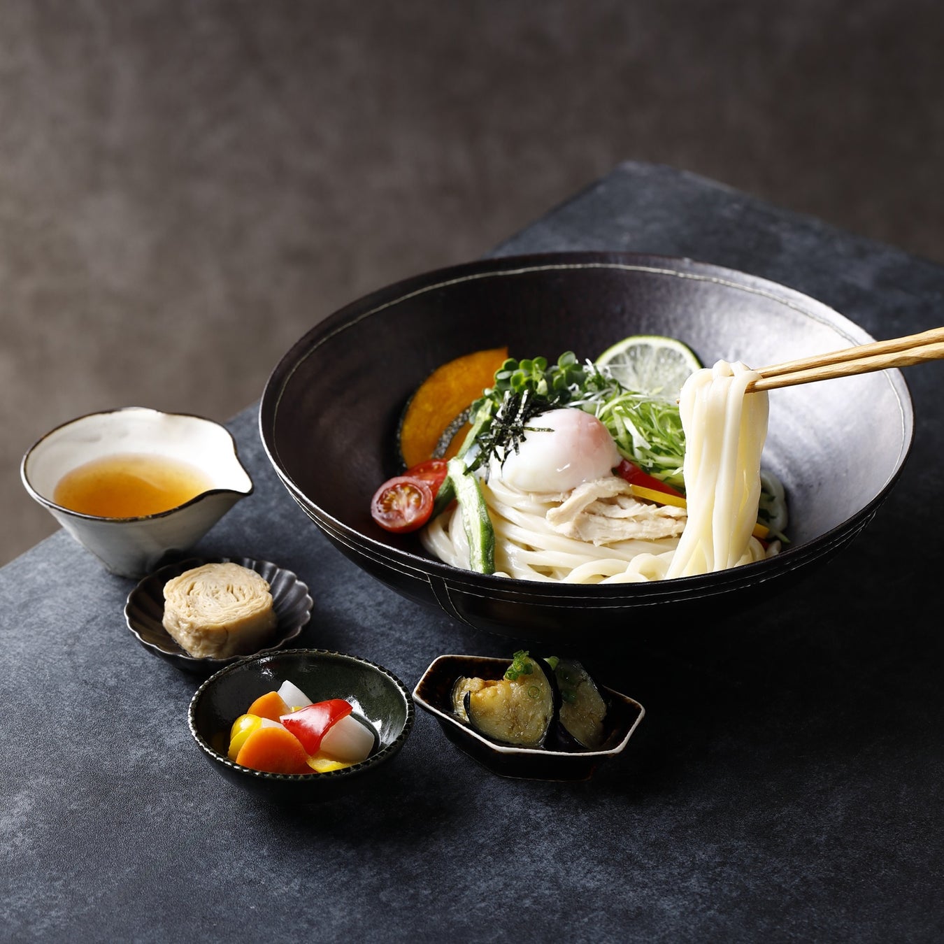 店内カフェスペースでは、限定のカフェメニューをご用意しております。地元日光産の野菜を季節にあわせて使ったサラダうどんは柑橘系のつゆにアクセントをつけて、さっぱりお召し上がりいただける味わいに仕上げました。他にも、日光御養卵を使用したデミグラスソース仕上げのオムライスや大胆にも焼き鳥を2本そのままトッピングした『焼鳥串重』など、ボリューム満点のフードメニューをご用意しております。また、スイーツには『御用邸チーズケーキ抹茶パフェ』が新登場します。御用邸チーズケーキをベースに、抹茶アイスや抹茶ソースをあわせ、食感の変化が楽しい白玉や飴細工もトッピングしました。さらに、夏にお試しいただきたい『宮柚子ソーダ』は、香りが強くきれいな果皮の品質の良さが特徴である栃木県宇都宮市で栽培された「宮柚子」を使用しています。