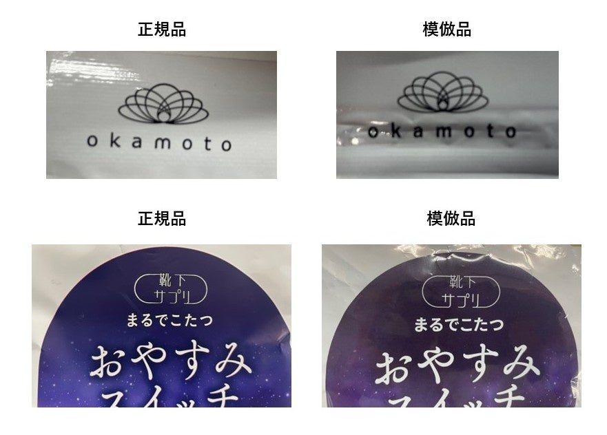 レッグウェア製造卸販売・岡本株式会社(本社:大阪市西区/本店:奈良県広陵町、代表取締役社長:岡本隆太郎)では、当社製品「靴下サプリ おやすみスイッチ」に酷似した模倣品が、一部のオンラインショップやフリーマーケットサイト等で販売されていることを確認しております。