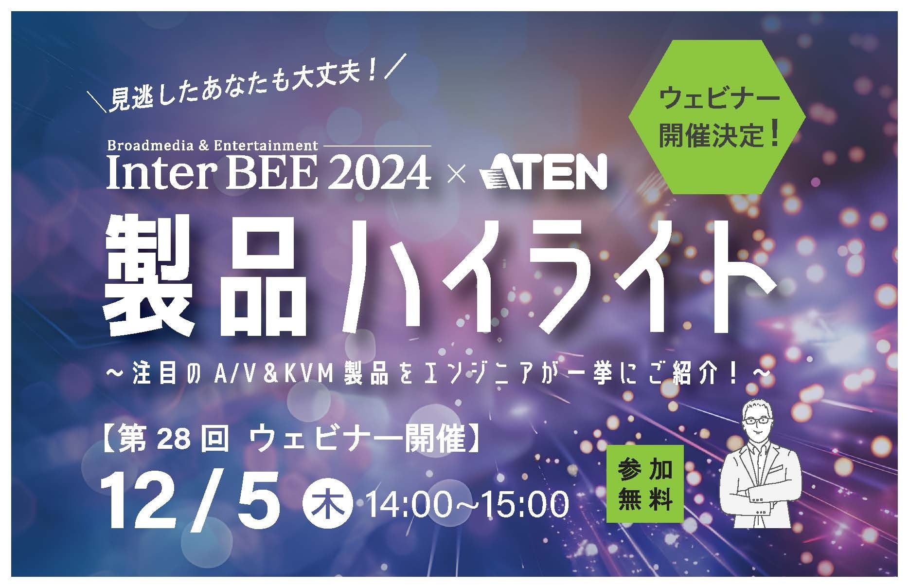 ATENジャパン株式会社 取締役社長:鄧 鴻群 (Hans Teng)は、12月5日(木)に「InterBEE 2024 ATEN製品ハイライト~注目のA/V&KVM製品をエンジニアが一挙にご紹介!~」というテーマで無料のウェビナーを開催いたします。