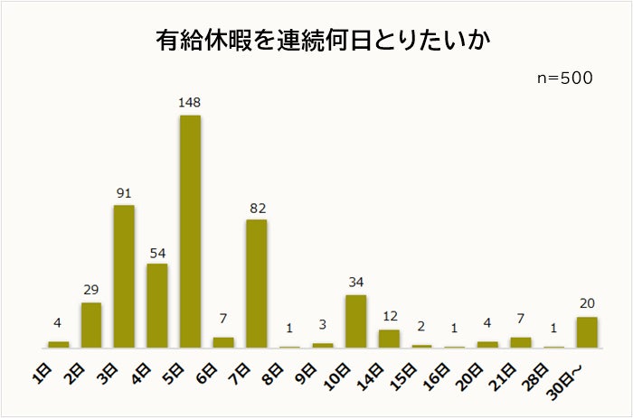 続いて、「可能であれば、有給休暇は連続何日取りたいか」を聞きました。