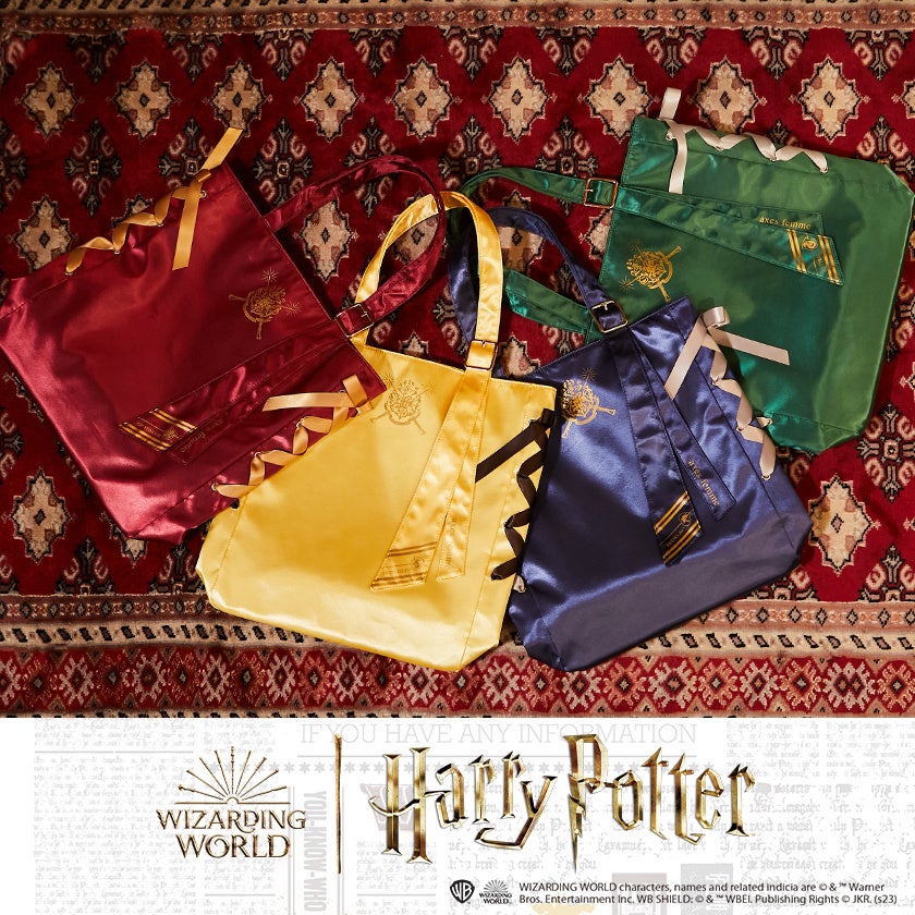 A4サイズがタテ・ヨコどちらでも楽に入れられる大容量なアイテム。カラーは物語に登場する各寮をイメージした4色展開です。