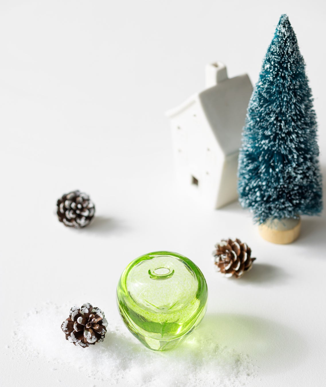 八重洲店でお買い物をしてくださるお客様への感謝の気持ちを込めて、青森を代表する果物であり、世界的にも「幸せの象徴」とされる“りんご”をモチーフにした一輪挿しを制作しました。昨年のクリスマスキャンペーンでは「あかりんごの一輪挿し」をプレゼントし、ご好評をいただきました。今年は、爽やかな色合いの“あおりんご”を新たにデザイン。皆さまにとって特別なクリスマスシーンを演出します。