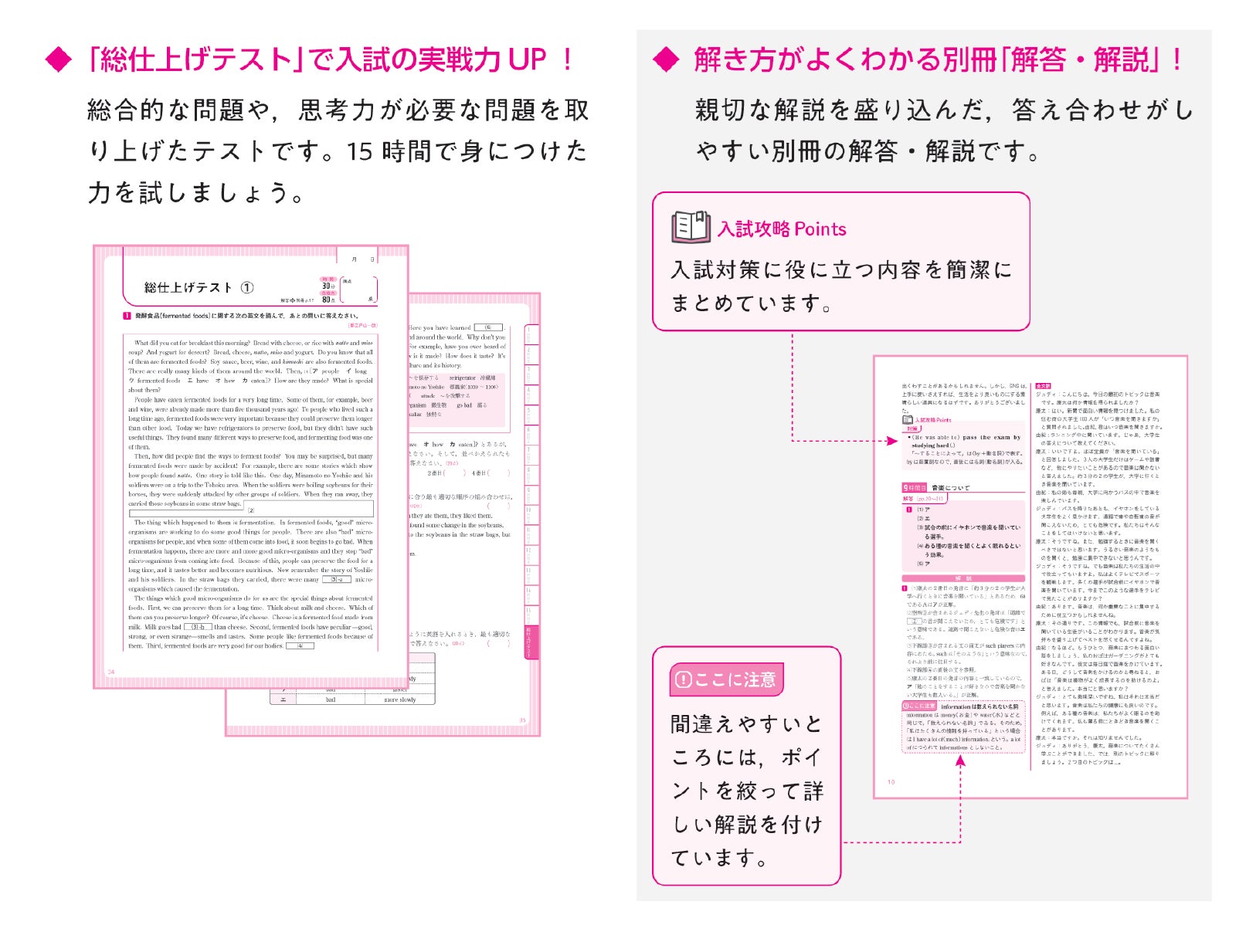 丁寧な解説を盛り込んだ別冊回答で、間違えやすいところには「ここに注意」などのアドバイスを適宜設けました。また、入試を攻略するためのポイントを単元ごとにまとめました。