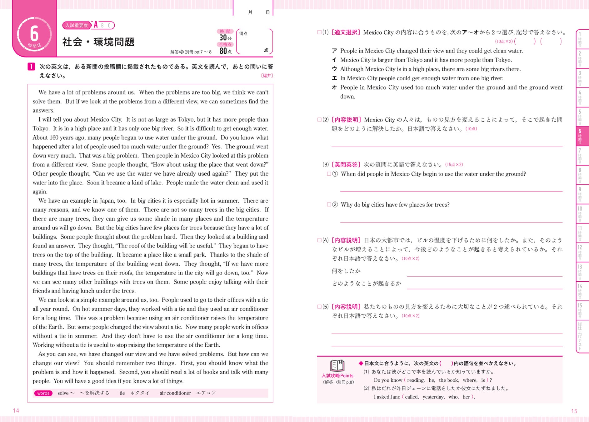 強化したい分野を、15回(15時間)集中して学習できるように、頻出問題を分野別に編集し、入試問題を厳選してまとめました。