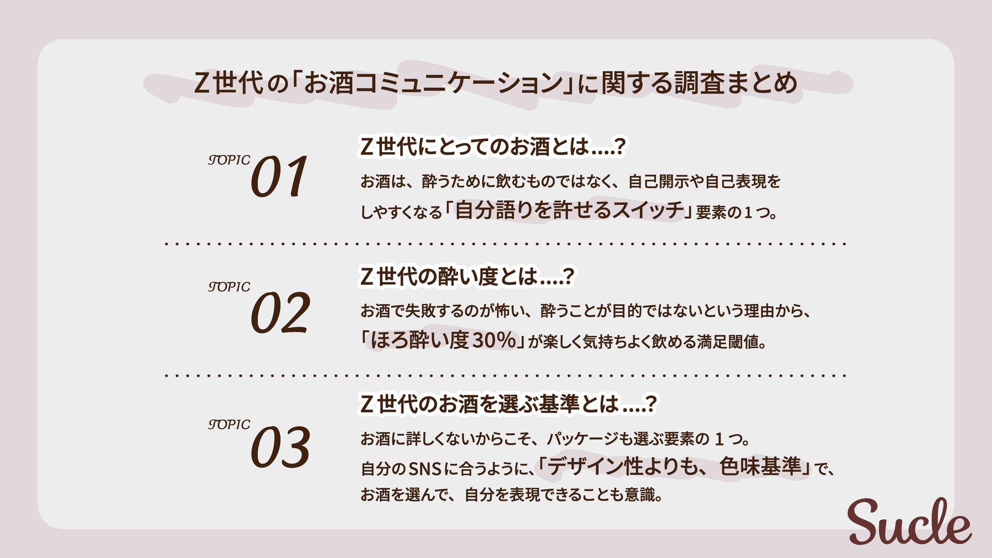今回のSucleユーザー約10名が参加したZ世代の「お酒コミュニケーション」に関するワークショップの調査をまとめました。
