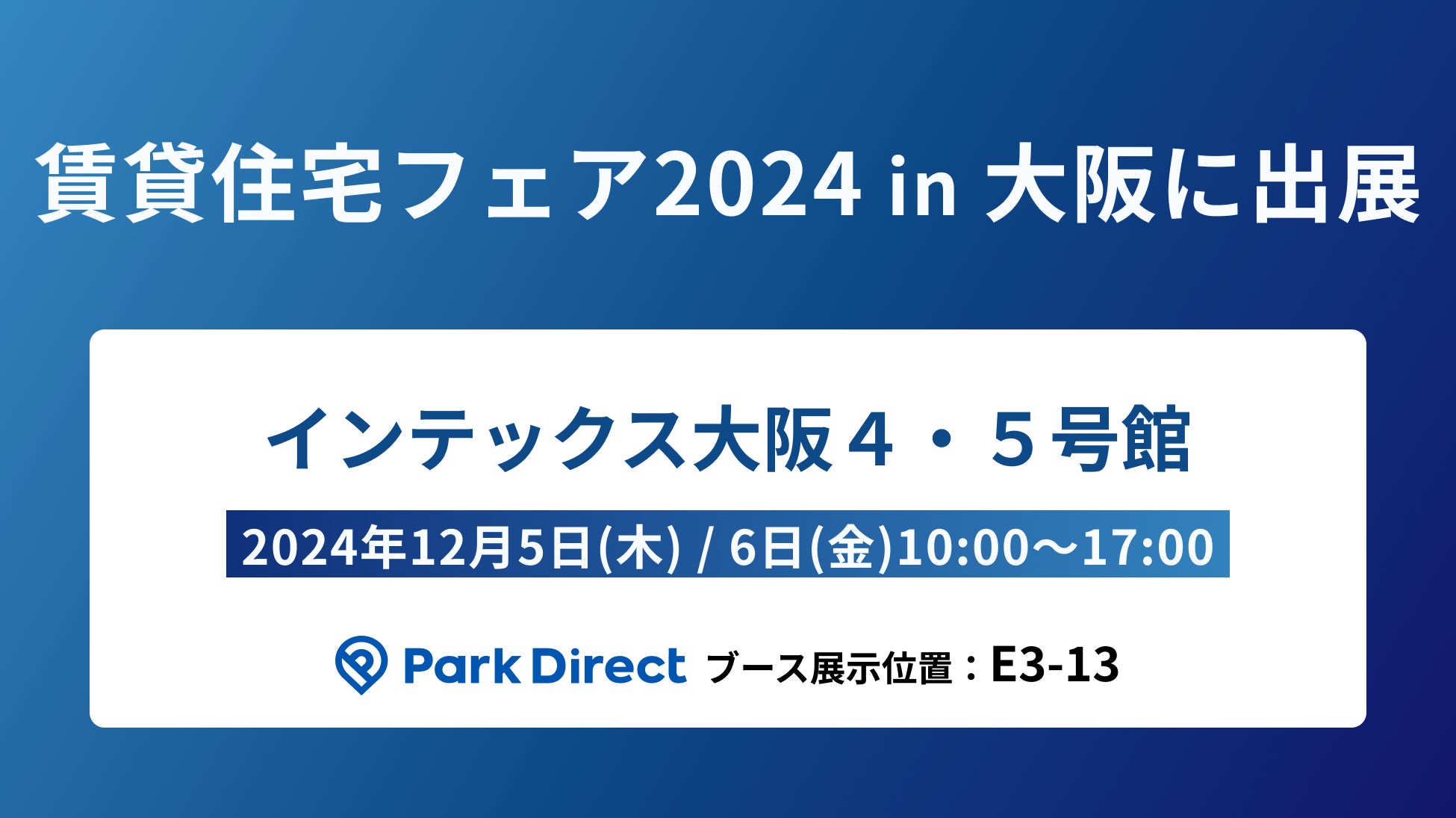 業界No.1(※1)のモビリティSaaS「Park Direct(パークダイレクト)」(https://www.park-direct.jp/)を運営する株式会社ニーリー(東京都中央区)は、2024年12月5日(木)、6日(金)にインテックス大阪で開催される「賃貸住宅フェア2024in大阪」に出展いたします。ブースではPark Directの導入メリットや活用方法などをご紹介します。