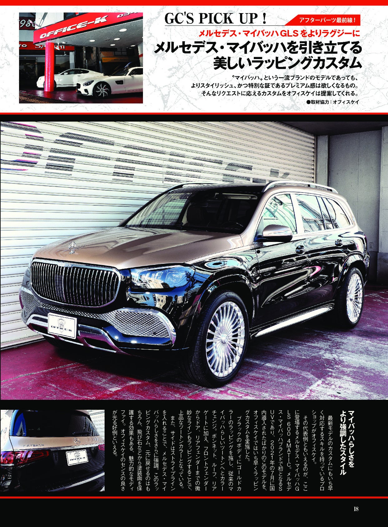 最新モデルにも素早く対応する“名工”プロショップ・オフィスケイ。その熟練の技術が堪能できる、メルセデス・マイバッハのラッピングカスタムを紹介します。ブラックとツートンの上質なボディカラーからもうかがえる、ハイセンスな一台は必見!