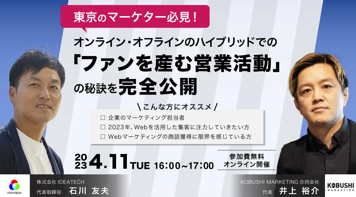 KOBUSHI MARKETING合同会社 代表 井上 裕介 氏 × 株式会社IDEATECH 代表取締役社長 石川 友夫 共催セミナー開催